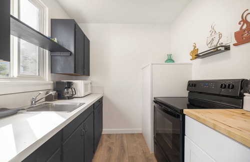 Salmon River Cabin #212 is one half of a duplex and is the most recently renovated cabin on the property. The space is bright and comfortable. The cabin has one bedroom, one bathroom, a full kitchen, a family room with a TV and pullout couch. The cabin sleeps 4 comfortably with a queen size bed in the bedroom and full hide-a-bed in the living room. There is free WiFi, TV with access to log into your own streaming accounts, and plenty of free off-street parking. There is a small patio off the side and a shared courtyard with a firepit and charcoal grills... Pets are always welcome!