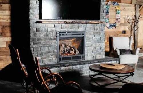 Step into the Saloon and feel like you're stepping back in time into the Old West. Complete with a full bar, indoor fireplace, king-size bed, and rustic decor, the Saloon is the ultimate man cave, perfect for a groom's suite, event or reception space, or simple getaway.