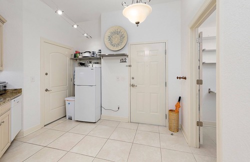 This updated efficiency unit boasts a comfortable king bed and a charming bunk room, accommodating up to four guests. The well-appointed kitchenette is perfect for preparing light meals, while the spacious living area invites relaxation with its large 55" HD Smart TV and welcoming seating options. Guests can enjoy a morning coffee or evening wind-down on the private balcony overlooking a serene wildlife natural area. With covered gated parking, a refreshing community pool, and convenient laundry amenities, every detail has been considered for your comfort during your stay.