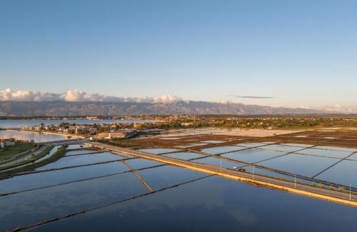 A 15-minute walk from Zdrijac Beach in Nin, Salt and Stone Villa provides accommodations with access to a sauna, hot tub, and spa center. With mountain views, this accommodation offers a balcony. There's an outdoor pool and guests have access to free Wifi, free private parking, and an electric vehicle charging station. Offering a terrace and sea views, the spacious vacation home includes 4 bedrooms, a living room, satellite flat-screen TV, an equipped kitchen, and 5 bathrooms with a walk-in shower and a hot tub. The comfortable, air-conditioned accommodation also comes with soundproofing and a fireplace. The vacation home offers bed linen, towels, and laundry service. During warmer months, you can make use of the barbecue facilities and eat on the private patio. Outdoor play equipment is also available at the vacation home, while guests can also relax in the garden. Prodorica Beach is 1.2 miles from Salt and Stone Villa, while Queen's Beach is 1.5 miles away. Zadar Airport is 16 miles from the property, and the property offers a paid airport shuttle service.