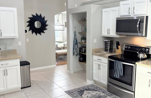 Escape to this gorgeous 4 bedroom 3 bathroom home in Sebastian, Florida! 8 minutes to fishing and beaches, this serene, stylish home boasts a private heated pool, a large fully stocked kitchen, 2 indoor dining spaces, a poolside living/dining area, an indoor gym/playroom, and convenient cabana bathroom. All the bedding and towels are provided in ample quantities for your convenience, as well as a washer/dryer. The home has two 65 in Smart TVs as well as 55 in Smart TV poolside. The home has a pack n play, a high chair, children’s plates and utensils, as well as children’s books, coloring and puzzles. Enjoy the amenities and comforts this home offers while making memories at the beach, on the golf course, exploring Sebastian Inlet and playing in the sparkling pool. Delight in the Salt Life!