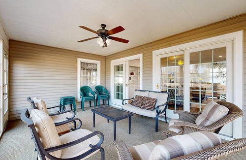 This property features a wealth of amenities to enhance your stay and wedding experience. Enjoy access to indoor and outdoor swimming pools, a fitness center, and courts for tennis and pickleball—all just a short stroll away. The large kitchen is fully equipped and designed to accommodate big groups with ease, providing an inviting space for everyone to gather. Host lively discussions in the three-season porch or enjoy outdoor BBQs on the patio equipped with a gas grill. High-speed Wi-Fi and comfortable living spaces, including a family room with vaulted ceilings, ensure that all your needs are met during this momentous occasion.