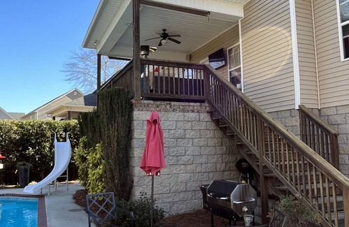 Located in a great family neighborhood <20mins away from AGS airport and Augusta National Golf Club. Private salt water pool with diving board, fitness equipment and free weights. HD smart TVs and hardwood floors throughout! Rates reduced due to minor lawn and other repair work that is in progress. No workers will be present during your stay, send a note for more information.