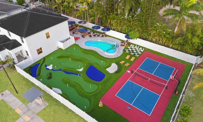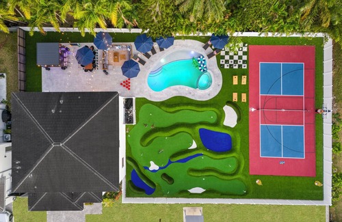Saltwater Pool, Hot Tub, 12-hole Miniature Golf & Pickleball + Basketball | House in Miami