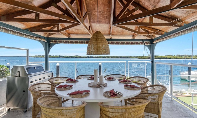 Salty Dayz is set on 1093m2 and enjoys 19 metres of direct frontage to the river making this amazing holiday home the ultimate lifestyle destination and a water lover's dream come true. With water directly off your pontoon being 8 metres deep you can easily moor larger vessels and with the Clarence River being well known for great fishing and boating this truly is a water wonderland for those lucky enough to secure their next holiday here. You can catch dinner off the pontoon!