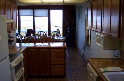 SALTY DOG is a 2 bedroom 2 bath oceanfront home located just north of Gold Beach in Rogue Shores a small oceanfront community of about 30 homes 1 MILE WEST of the Highway 101 and away from traffic. Gold Beach is located about 30 miles north of the Oregon/California border on the world famous ROGUE RIVER. This open plan 2 bedroom home has all wood floors with a full west side glass wall and panoramic views of the coastline and ocean. The main floor is the second floor with the living room with wood burning fireplace, dining room, full bath and kitchen and full laundry. The bedroom has a queen bed and a twin. There is a futon in the living room.