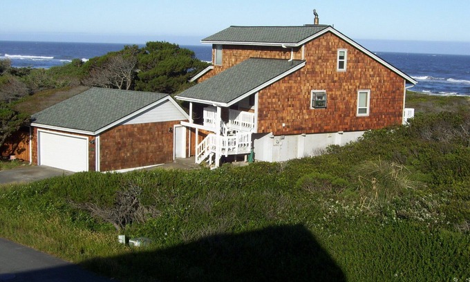 The third floor is the master bedroom with a king bed and seating area and a bath. The house has WIFI, full cable TV, a large west side deck and a HOT TUB under the trees. There is a 2 car garage. We have our own path to the beach about 100 feet west of the home. Our beach is about 3 miles long and sandy with large off shore rocks and the Marine Mammal Reserve from the mouth of the ROGUE RIVER to the south and OTTER POINT to the north. The lights of Port Orford are visible at night to the north west and you can see the Cape Blanco lighthouse flash every 20 seconds. There are many Harbor seals, Sea Lions, sea otters and sea birds off shore and grey whales can be seen years round. Look for agates (semi precious stones) shells, driftwood and other interesting items or you can just enjoy a nearly empty beach and watch the waves and sunsets.