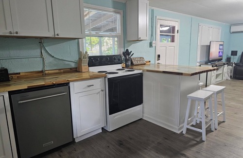 Escape to our charming and newly renovated dog-friendly vacation rental! Nestled on a spacious double lot, this cozy two-bedroom, one-bath home offers a perfect retreat for those seeking comfort and convenience. The property boasts a fenced backyard, ideal for your furry companions to play freely, as well as a long gravel driveway, perfect for parking your boat.