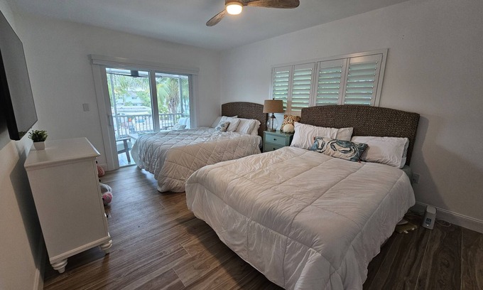 Salty Suites is simply paradise 365 days a year. Located in the fishing capital of the Florida keys, Islamorada. This peaceful 2 bedroom, 2 bathroom oasis will help you forget about life for a while. Minutes away from the finest restaurants and a short boat ride to Snake Creek and Tavernier Creek. Watch the manatees from the 60ft dock and the best sunsets in the world just 1 block away. Plenty of space for your small boat, trailer, or RV.