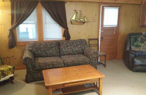 Year Round Rental. Located a one minute walk from the Worlds 6th Most Beautiful Lake. Perfect for those who enjoy boating, snowmobiling and hunting! Fully Furnished with complete kitchen, bedding and towels. (You will want to bring own beach towels.) Just recently remodeled with cathedral ceiling and fireplace. New windows so you can smell the water and catch the breeze! Two bedrooms one with Queen Bed and the second with single bunks. Screened in Porch Allows for blow up mattress with frame for additional sleeping space or can be set up in living room. (Maximum 6 ppl in house/porch)