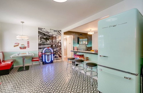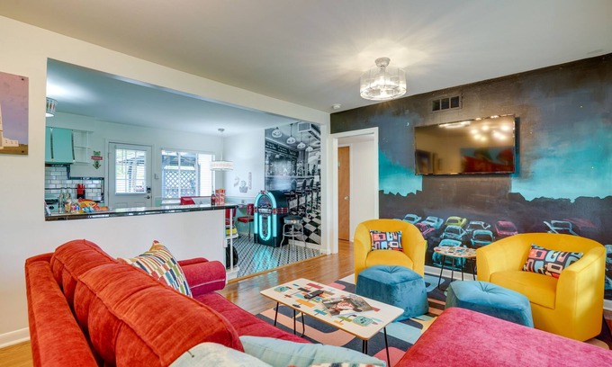 Experience the fun of San Antonio from this retro-inspired vacation rental. Offering 2 bedrooms, 1 bathroom, vintage decor, Smart TVs, and enough games for endless entertainment, this unique duplex is perfect for sharing memory-filled moments! Spend your time exploring downtown San Antonio, visiting The Alamo, or checking out the fun at Six Flags. At day’s end, head back to enjoy the private fenced-in yard with space for pets, a hot tub, and outdoor seating areas. ‘Vacation You’ awaits!
