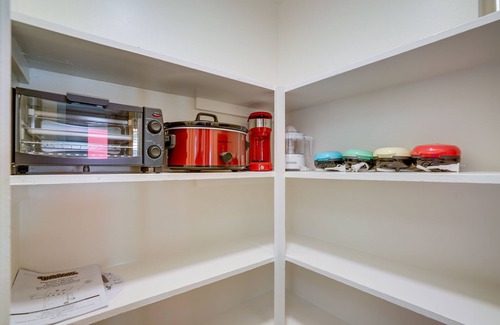 KITCHEN: Stove/oven, fridge, coffee maker (coffee provided), coffee grinder, Crockpot, microwave, toaster, toaster oven, blender, tea kettle, ice maker, dishware/flatware, spices, basic cooking essentials, wine cellar