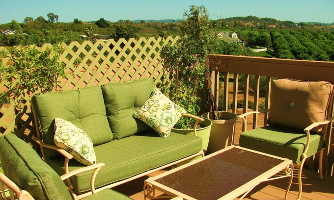 GET AWAY from the hustle & bustle of everyday life and spend quality time together in our Country Barndominium located in Valley Center, California in San Diego County. We are nestled among the lush citrus. avocado groves, vineyards and horse ranches. You will often hear the sounds of Hawks and Eagles soaring through the blue skies from the PRIVATE DECK of this beautiful & spacious PRIVATE 1 BR - 1BA, full kitchen with a fabulous 180 degree mountain & sunset views. We are out here on almost 3 Acres so our neighbor properties are all spaced well. This Spacious & private Barndominium is .located out in the country down a country road. where there is no light pollution and we look at Mt. Palomar where the world famous Palomar Observatory is located. Downstairs, there is a private patio area with a BBQ, Spa, Seating with a grassy area to play games with a table to enjoy BBQing and eating food outdoors. . We offer a full kitchen with everything you would need including 3 coffee makers. During the spring we offer to fruit lovers, Tangelos, Tangerines right off our trees. We respect guests privacy but we are on the property (NOT in the rental area) if you need us, we are a text away.