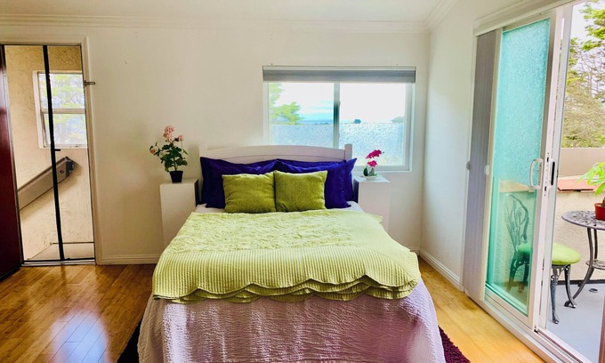 Amazing sweeping view of the San Francisco Bay and not to forget the Pacific Ocean. Spectacular contemporary townhouse style Apt . Highlights: stunning Bay views You have never seen a unit like this! Beautiful sunrises through this Apt balcony and room. this unit on the third floor of building, Private entrance with great Top floor view and always clean and organized. The morning sun shines through the window onto your bed . you'll feel like you hit the jackpot of residences ! Walking distance to many markets for your grocery needs very convenient also restaurants and shopping mall. Street parking available anytime no street cleaning. 10 minutes to SFSU , 8-minutes to SFO airport and BART Station. BART travels to SFO airport and anywhere in SF bay bay . YouTube/Google is 8 minutes away and other Tech Companies . Come live the good life at bay view Apt on you trip .