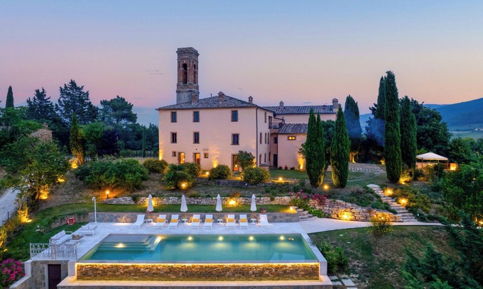 Best-rates for the Radicondoli villa starts from $1,033 per night with includes Laundry, Air Conditioner, TV, Balcony/Terrace, Security/Safety, Pool, Ocean View, Parking, View, Wellness Facilities, Fireplace/Heating, Barbecue/Outdoor Cooking, Internet, Private Pool, Bedding/Linens, Child Friendly, Kitchen with all other amenities. Perfect for Weddings is committed to ensuring every guest experiences a comfortable and extraordinary stay, whether planning a romantic getaway, a honeymoon, a pet-friendly stay, or celebrating with the entire wedding party.