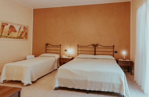 Your stay at the San Raffaele Hotel Restaurant & Resort includes a range of delightful amenities designed for relaxation and enjoyment. Guests can indulge in a complimentary buffet breakfast each morning, while the onsite restaurant serves exquisite cuisine perfect for both intimate dinners and larger wedding receptions. Take advantage of the seasonal outdoor pool, unwind at the bar/lounge, or explore the beautiful surroundings with organized tours. The comfortable accommodations feature modern conveniences such as minibars, safes, and flat-screen televisions, ensuring a tranquil retreat after your festivities.
