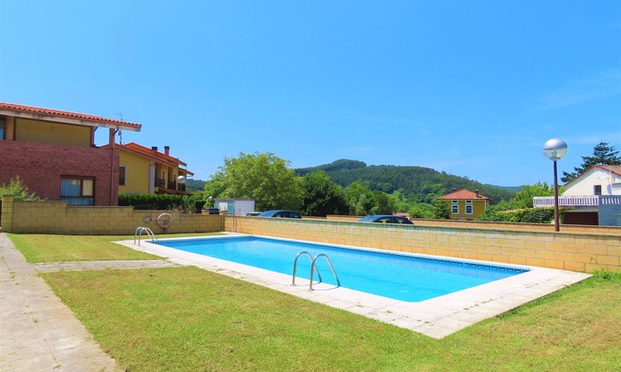 3 bedroom apartment, with large private garden and community pool, just 5 minutes from the beach and Santillana del Mar.
