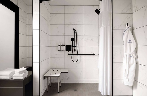 Sanctity Hotel Rancho Cucamonga, Tapestry Collection Hilton offers 68 accommodations with laptop-compatible safes and complimentary bottled water. Pillowtop beds feature Egyptian cotton sheets, down comforters, and premium bedding. 65-inch LED televisions come with premium satellite channels and Netflix. Bathrooms include bathtubs or showers with rainfall showerheads, bathrobes, slippers, and designer toiletries.