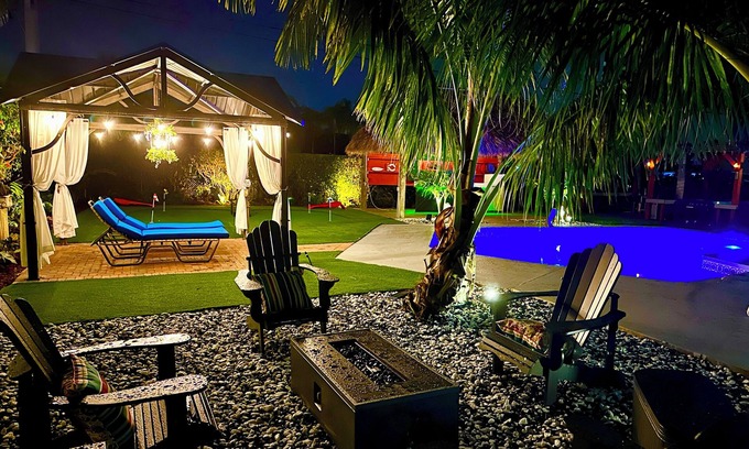 Sanctuary 7BR Sleeps 16, Heated Pool, Tiki Bar, Pickleball, Gameroom, No Stairs | House in Lake Worth