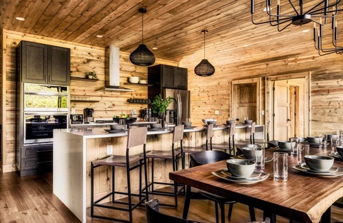 **Welcome to The Sanctuary at Kettle Creek**, a luxurious 5-bedroom modern cabin nestled in the heart of Gatlinburg. Set on a sprawling private estate, this exquisite retreat offers an array of unparalleled amenities designed for family fun and relaxation.