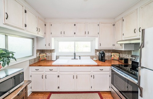 -Fire pit, stocked pond, gazebo, hammock, nature, full kitchen