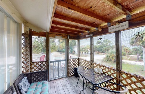 Escape to this quirky octagonal seaside cottage, just a short walk from Gulf beaches and Indian Lagoon. Enjoy a screened porch, full kitchen, central A/C, free WiFi, and private washer/dryer. Salinas Park is nearby, and charming towns like Port St. Joe and Apalachicola are within 20 miles. No pets or smoking. Quiet hours 10 PM–8 AM. Must be 25+ to book. Digital lock with unique code. Free parking for 3 vehicles. Permit: STR23-000130.