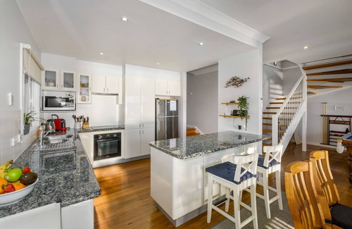 Kitchen & Laundry: There is a dishwasher, induction stove top, oven, large microwave, coffee pod machine, fully equipped with cooking utensils, crockery, cutlery, glassware, foil, gladwrap, condiments etc. There is a washing machine in the laundry.