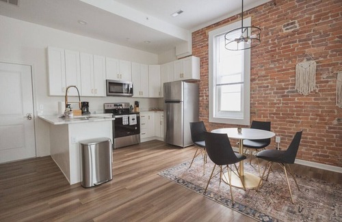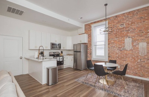 Come stay in the beautiful Sandringham House Airbnb! This efficiency suite with 1 bathroom and gorgeous brick accents, will make you fall in love the second you walk through the door. It is centrally located in Martinsburg close to all the best shops and restaurants. An easy travel away from breweries, wineries, hiking, tubing, and much more. Free high speed wifi that can take care of all your work or entertainment needs. Monthly parking pass available upon request for long-term stays.