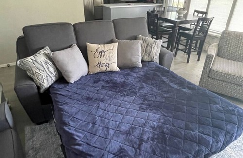 This fully furnished cozy cabin located on a large corner lot is the perfect place for a family awaiting a peaceful lake getaway. Kitchen is fully stocked for preparing meals from slow cooked that are ready when you get back from a long day on the water to grilling up burgers and hotdogs with all the sides. Just minutes away from Arrowhead state park offering golf course, hiking trails, swim beach and Area 51 marina. Only 9 miles from downtown Eufaula with small town shopping and dining.