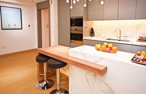 Welcome to your spacious retreat! Our apartment features a king-size bed, built-in wardrobes, and a TV in the bedroom with a full bathroom. The living room boasts a comfortable 4-seater L-shape sofa and another TV, seamlessly connected to a fully equipped kitchen with all the essentials. As you enter, you'll find a second bathroom, enhancing convenience and comfort during your stay. Experience spacious living and thoughtful design in every corner of this inviting space
