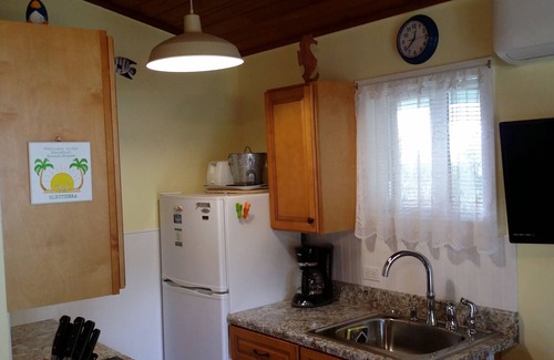 Large efficiency with king size bed and full size bath. New kitchen plus outside grill. Step outside to a beautiful sandy beach. We are lcoated midway on the island so makes it great for day trips to the north or south. We have kayaks, a canoe and rowboat that doubles as a sailboat for your use. Quiet location with easy access within a 5-7 mile radius to grocery stores, restaurants, a bakery and fresh produce. The property faces south so you can enjoy beautiful sunrises and gorgeous sunsets!