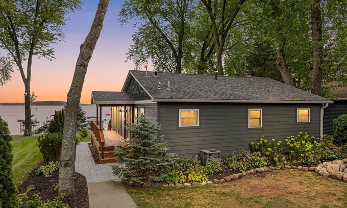 Located on the much sought-after west end of beautiful Green Lake, this home will meet the needs of those seeking calm shallow waters with a sandy bottom. Well maintained level yard with firepit and 100-foot pier. Pontoon and boat lift rental available. This unique property includes a main house and a separate bunk house. The main house offers an open concept feel with panoramic lake views from the 3 season living space where you and your guests will want to gather for early morning coffee at sunrise. The kitchen and bath have been updated and there is 1 bedroom with a queen and the second with 2 twins.