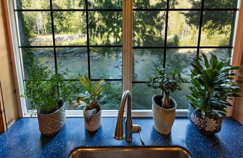 - Unwind in nature's embrace at a 1925 cabin with hot tub & river views