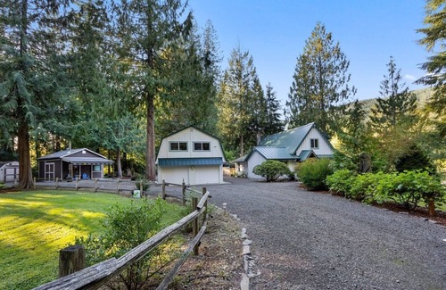 Tucked on 1.2 acres of riverfront along the Sandy River, our cabin offers a rare blend of seclusion and convenience—just 2 minutes from Hwy 26, yet it feels like a world away. The hush of the river can be heard from every corner of the property, especially when you open the back door of the main cabin.