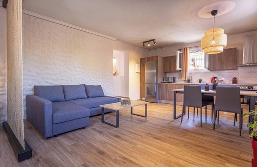 The space features a comfortable double bed and a double sofa bed, making it ideal for couples, families or friends traveling together.