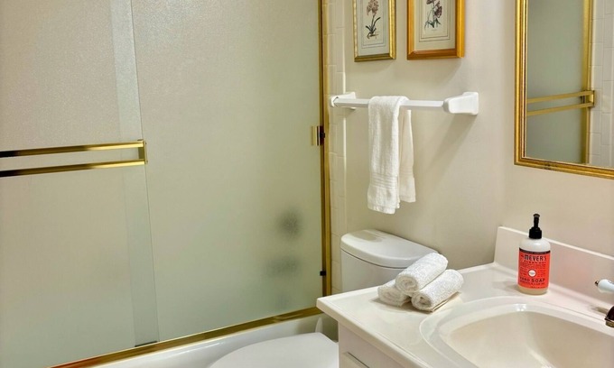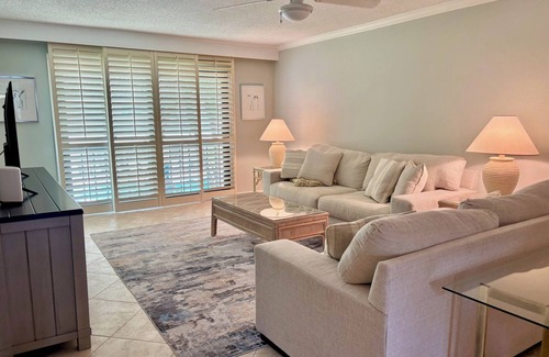 - Spacious condo with views of oak canopy, gardens & pool. 5-minute walk to beach.