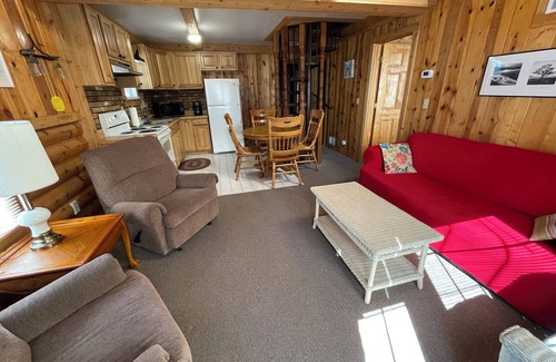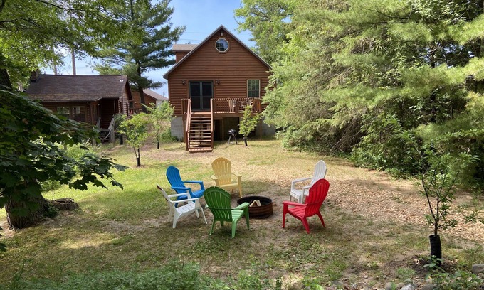 This knotty pine duplex cabin is situated among young fruit trees with a private barking sand beach on the beautiful Lake Huron. With a fire pit, a bountiful garden and lots of sand, this charming cabin is the perfect place for a large family holiday or a group trip to the beach.