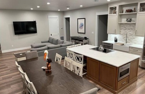 Our kitchen is made for cooking! For your convenience, it’s equipped with a double oven, warming drawer, microwave drawer, induction cooktop, ice maker, dishwasher, keurig coffee machine . The kitchen has seating for eight at the table, four at the island and three at the wall table for a total of 15. Make sure you're the first to the table so you can grab the best seat to enjoy the ocean views out of the two eight foot by twelve foot sliding glass doors. If you watch closely you might catch the dolphins playing or a sighting of a manatee or two.