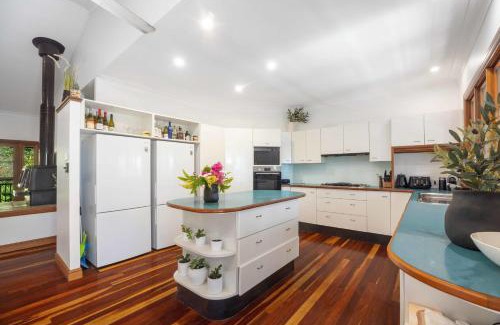 Sangfroid is located in Kiels Mountain, just 10 miles from Aussie World and 11 miles from SEA LIFE Sunshine Coast Aquarium. Both free Wifi and parking on-site are available at the vacation home free of charge. Outdoor seating is also available at Sangfroid. Offering a patio and mountain views, the spacious vacation home includes 4 bedrooms, a living room, cable TV, an equipped kitchen, and 3 bathrooms with a bath. Towels and bed linen are featured in the vacation home. The accommodation has a fireplace. Guests can enjoy the outdoor swimming pool and garden at the accommodation. Australia Zoo is 19 miles from Sangfroid, while Noosa National Park is 26 miles away. Sunshine Coast Airport is 8.1 miles from the property.