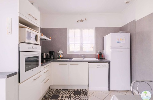 Cette maison possède un séjour ouvert sur cuisine équipée, un salon avec un canapé convertible, 2 jolie chambres avec lit double. Une salle d'eau avec douche, une vasque, un wc séparé, un cellier avec machine à laver et une douche extérieur pour vos retours de plage.