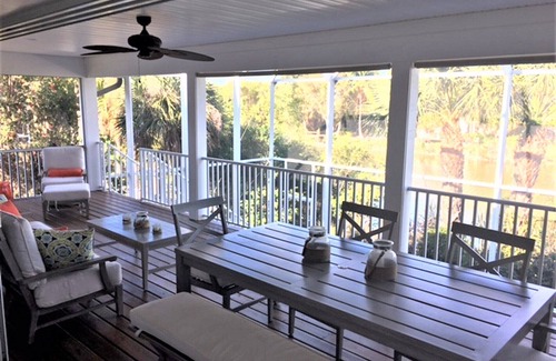 This Sanibel home with its beautiful views of Sanibel river, spacious open floor plan, and private heated swimming pool is the perfect retreat for your family vacation. Located within a golfing community, Sanibel Estates, and being a short walk to the beach, the tranquility of the Sanibel River from your living room view will relax you the moment you arrive. Sit on the screened lanai to enjoy your morning coffee marveling at the beautiful wildlife and island flora or lounge poolside for an afternoon swim, and the evenings dining alfresco. You'll certainly enjoy the quiet serenity of your new home!
