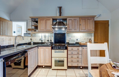 - Kitchen area with fully fitted kitchen, ample workspace for food preparation, Bosch dishwasher, fridge-freezer, cooker hob and oven, microwave oven and all cooking utensils