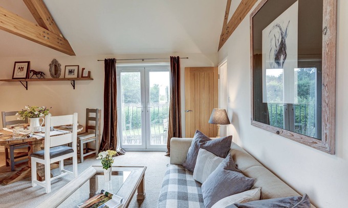 Sansoms Loft is a charming and stylish one-bedroom apartment near Wootton, just minutes from Woodstock and a 30-minute drive to Oxford. Perfectly located for visits to Soho Farmhouse, Blenheim Palace, Oxford, and the Cotswolds. The spacious open-plan living area features vaulted ceilings, wooden beams, and large windows with views of farmland. Enjoy the private garden with outdoor furniture, offering stunning countryside views - an ideal retreat for relaxation and exploration.