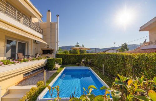 Featuring a garden, Santa Barbara Garden and Pool Home provides accommodations in Marathon. This villa offers air-conditioned accommodations with a balcony and free Wifi. The villa features an outdoor swimming pool and private check-in and check-out. Offering a terrace and mountain views, the villa includes 2 bedrooms, a living room, cable flat-screen TV, an equipped kitchen, and 2 bathrooms with a bath and a shower. Guests can enjoy an ambient stay in their soundproof room with tiled floors and a fireplace. The property has an outdoor dining area. During warmer months, you can make use of the barbecue facilities and eat on the private patio. Lake Marathon is 8.2 miles from the villa, while Goulandris Natural History Museum is 15 miles away. Eleftherios Venizelos Airport is 16 miles from the property, and the property offers a paid airport shuttle service.