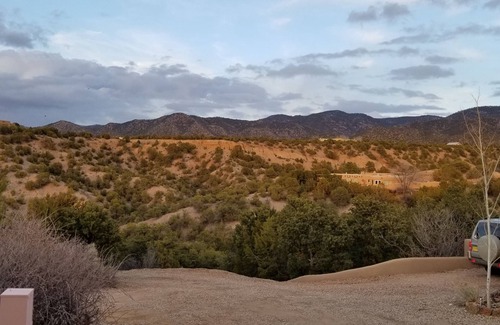 This Santa Fe Adobe Jewel is nestled in the foothills of the Sangre de Cristo Mountains LOCATED in this jewel of a private Subdivision, located in Santa Fe County and about 12+ miles North of the Santa Fe Plaza. Santa Fe Cottage is a quaint little adobe cottage that is private & quite with beautiful views of both the Sangre de Cristo & Jemez Mountains. You can have your morning coffee on the enclosed Patio, or side porch or just stay snuggled in your bed watching the views from your window. And in the evening take a walk up to the top of the hill & see the most beautiful sunsets in the sitting area having a nice glass of wine or hot cocoa. It has a full size kitchen; Fridge, stove, dishwasher, micro-wave, pots, pans & dishes + utensils and washer/dryer w/detergent. The Bedroom has two twin beds made to be a KING, or separately. The couch turns out to a queen size bed for two. TV-flat screen, cable ready, Netflix and WIFI available. Centrally located to both; 13 miles to Santa Fe Plaza and about 30 miles of awesome scenery to (1) Chimayo, NM, famous for the El Sanctuary de Chimayo known as “Lourdes of America”, where people all over come to give thanks or ask for favors and where miracles are made. And walk away with a token of their healing sand, (2) also in driving distance to gorgeous views of Los Alamos where our nuclear testing were done which can all be learned at the Bradbury Science Museum FREE to the public.