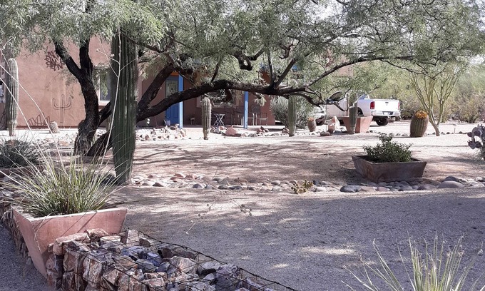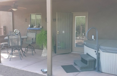 Our Casita Azure is located on a private secure acre lot !Desert landscaping. Fenced in back area with a Hot tub and patio. Front porch great for bird watching .! We have Quail , finches ,cardinals and several Harris and Cooper hawks visiting our feeders daily . Acre lot, desert landscaping., 1300 square ft of family-friendly living space. Come and enjoy the warm weather during the winter months . Lots of hiking and biking trails. Beautiful Parks . Great activities around the University and downtown area , about a 10 minute drive. Shopping close by. !!!!! Small Dog Friendly