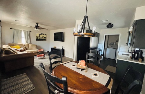 Thanks for looking at the Santa Fe Depot. Three bed one bath single-family home located near downtown Cushing. The home was recently remodeled. Inside you’re welcome by a cozy living room that extends to the dining area and kitchen. Full bathroom features a walk in shower and toiletries needed for your stay. All three bedrooms have queen sized memory foam mattresses. Laundry room has washer and dryer, garage could be utilized as a seating area or park your vehicle. Home is less than a mile away from downtown Cushing, 30 minutes from StillWater, and approximately one hour from Tulsa and OKC.