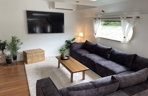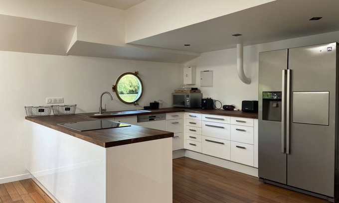 Close to the riverside, a golf course, and more, this welcoming houseboat brings it all within reach. Thanks to the convenient onsite parking, you can either leave your vehicle behind and enjoy a short 5-minute walk to Oise-Pays de France Regional Natural Park, or easily tackle the 26-minute drive to Parc Astérix. If you're looking to expand your horizons and see other nearby locales, you can catch a train at Chantilly Saint-Leu-d'Esserent Station, a short 8-minute walk away.