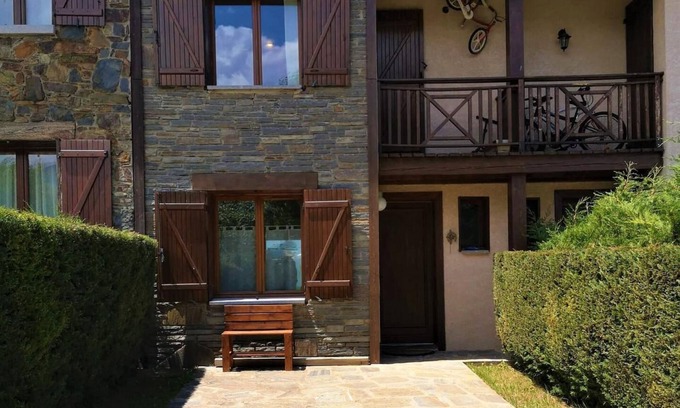 Beautiful townhouse with large private garden just 10 minutes from Puigcerda, in a quiet area. It has 3 double bedrooms , 1 bathroom, 1 toilet, living-dinning room with fireplace and fully equipped kitchen. It also has a private yard with beautiful panoramic mountain views.