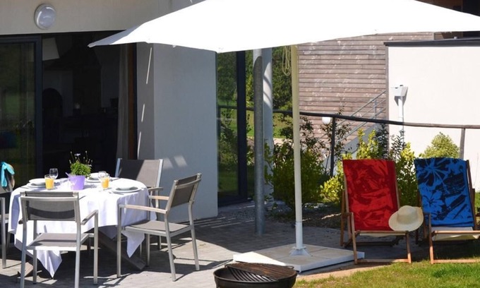 Welcome to the Santal - Appartement 4/6P avec terrasse, an enchanting retreat designed for families and couples alike, making it a perfect choice for your wedding accommodations. This spacious ground-floor apartment comfortably hosts up to six guests, providing ample room for relaxation and celebration. With bright interiors and large bay windows leading to a private terrace, you can enjoy picturesque countryside views over the Gulf of Morbihan, setting a romantic backdrop for your special moments.